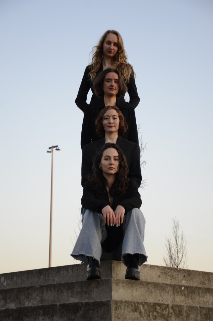 Was war zuerst da: Klang oder Bewegung? Unmöglich zu beantworten und vielleicht auch gar nicht von Bedeutung – die falsch gmbh ist halb Tanz, halb Musik, und gleichzeitig beides zu 100 Prozent. Seit sich ihre Wege im November 2024 in Berlin kreuzten, geben sich Milagros Velázquez Nanni, Carley Marholin (beide Tanz), Clara Franz und Clara Baesecke (beide Violoncello) der Verwirklichung ihrer gemeinsamen künstlerischen Vision hin: einer performativen Sprache, in der Musik und Tanz von der ersten Idee bis zur fertig choreographierten Komposition zusammen überlegt, gelebt und erlebbar gemacht werden. Der Name der Gruppe spielt mit der Unmöglichkeit, “es” als Frau richtig zu machen. Dafür setzt sich die falsch gmbh in Klang und Bewegung – und besetzt “falsch” neu und positiv.